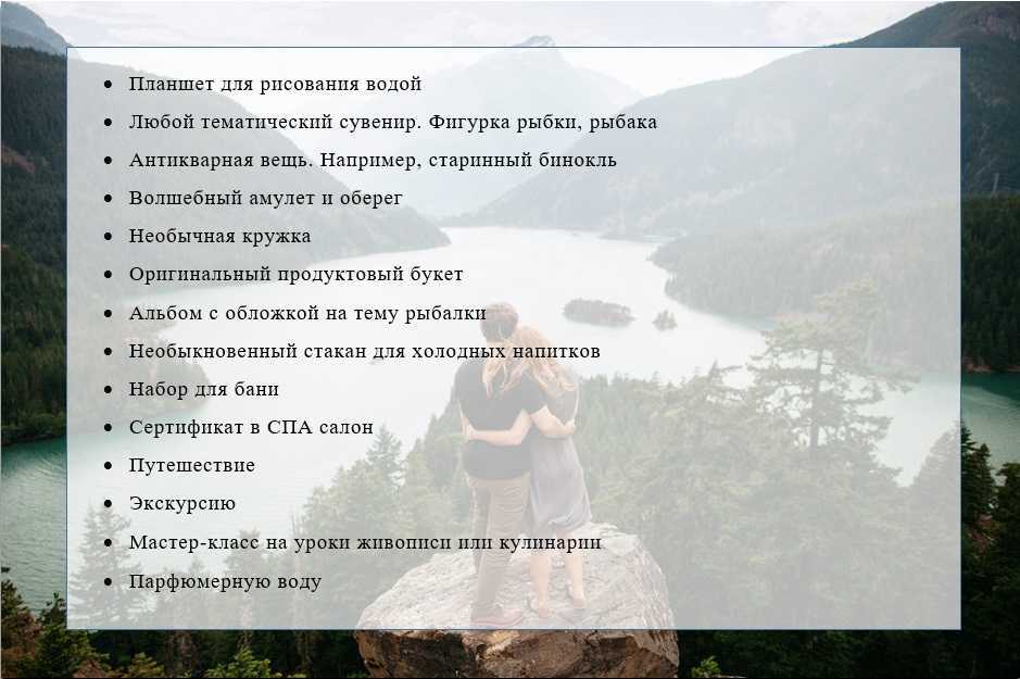 Рыбы не только романтики, большинство мужчин имеют творческую профессию или задатки к какому-либо творчеству. Полагаясь на способности любимого человека, можно выбрать презент с достойным содержанием, подходящим для конкретного человека: альбомы, сувениры, экскурсии и даже путешествие.