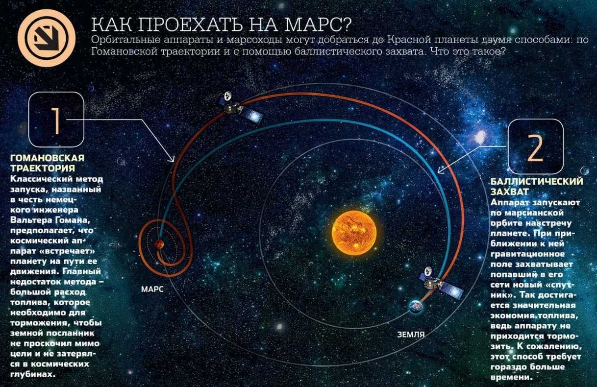 Из-за непрерывного перемещения космических участников Солнечной системы прямого маршрута на Красную планету не предвидится.