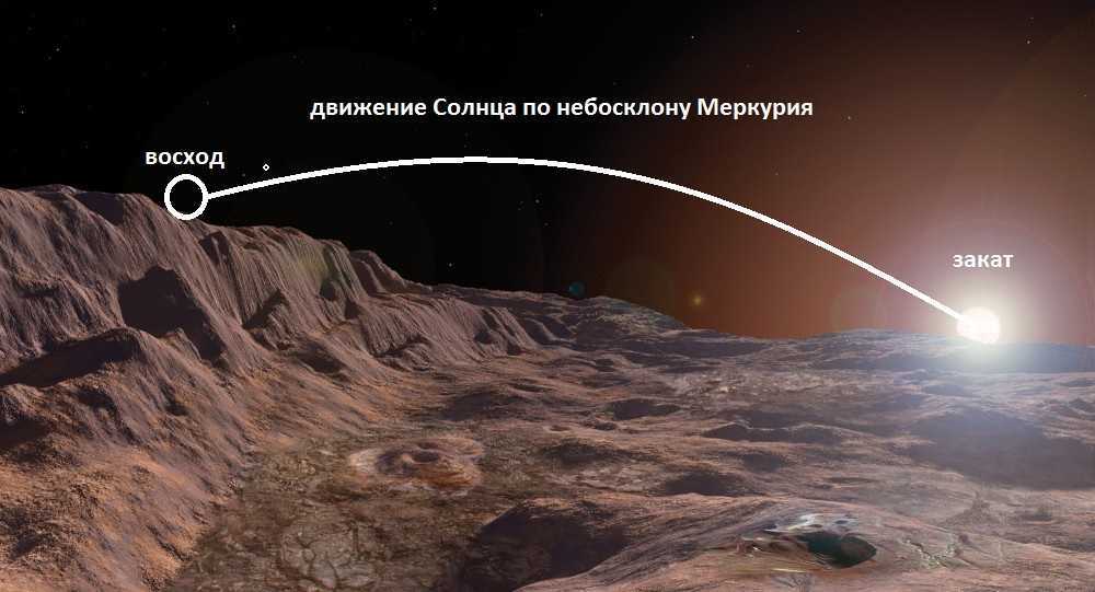 Наиболее подходящим объяснением этой особенности орбиты планеты является рассмотрение прецессии с точки зрения теории относительности Эйнштейна. Ранее орбитальный резонанс Меркурия оценивался от 1 до 1. Фактически оказалось, что этот параметр имеет значение от 3 до 2. Ось планеты расположена под прямым углом к плоскости орбиты и сочетанию скорость вращения соседнего Солнца вокруг своей оси с орбитальной скоростью приводит к любопытному явлению… Светило, достигнув зенита, начинает разворачиваться, поэтому на Меркурии восход и заход Солнца происходят в части горизонта Меркурия.