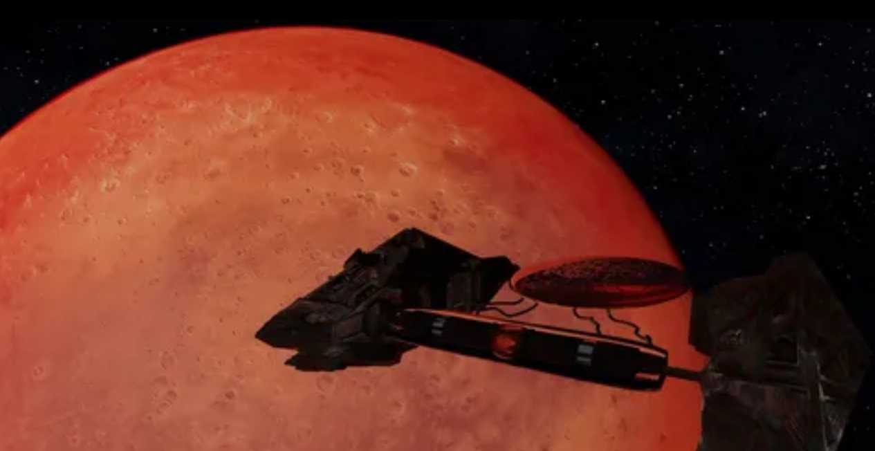 Согласно гиперболической версии движения, космическая станция должна сначала пролететь мимо Марса, затем изменить вектор маршрута, чтобы проникнуть в гравитационное поле планеты.