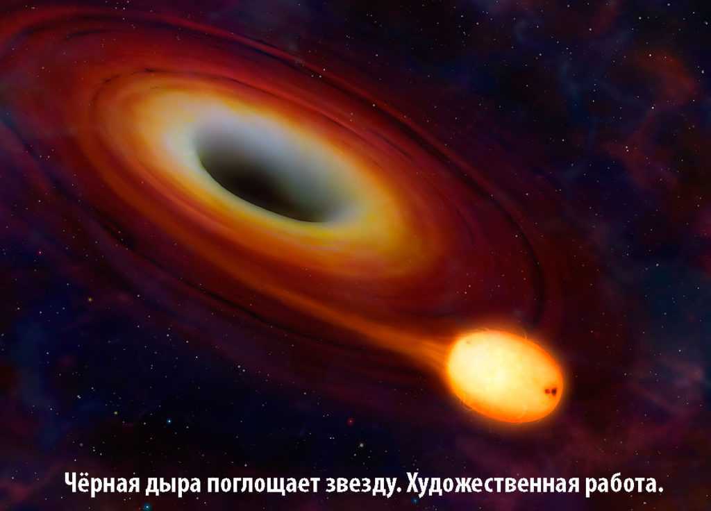 Это тоже очень интересно, поскольку, чем ближе мы подбираемся к черной дыре, тем сильнее все эффекты общей теории относительности проявляют себя. Но есть предел: если звезда подойдет слишком близко к черной дыре, то приливные силы просто разорвут ее. Вокруг черной дыры на короткое время возникает аккреционный диск, и до этого спокойная черная дыра становится активной — она начинает пожирать это вещество.