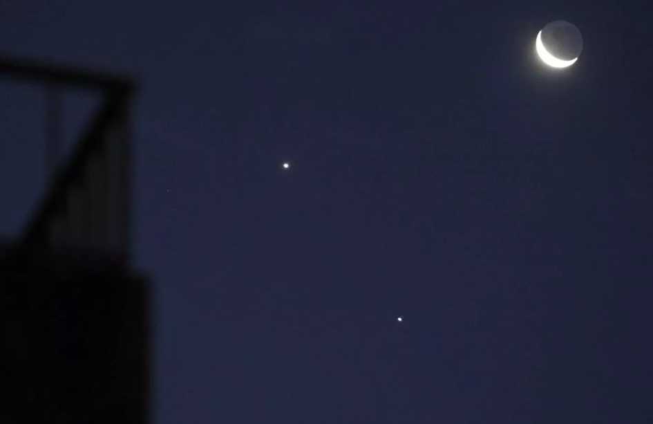 Луна и планеты Юпитер (внизу) и Венера (выше и левее) в небе над Буэнос-Айресом 1 декабря 2008 года