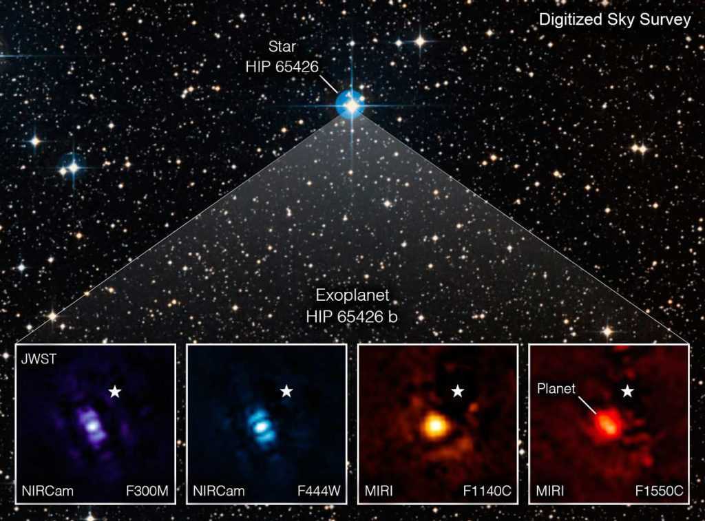 HIP 65426b — супер-юпитер, экзопланета, за которой в июле 2022 года наблюдал «Уэбб» при помощи инфракрасной камеры NIRCam и спектрографа MIRI. Телескоп получил первое прямое изображение экзопланеты в четырех диапазонах инфракрасного излучения.
