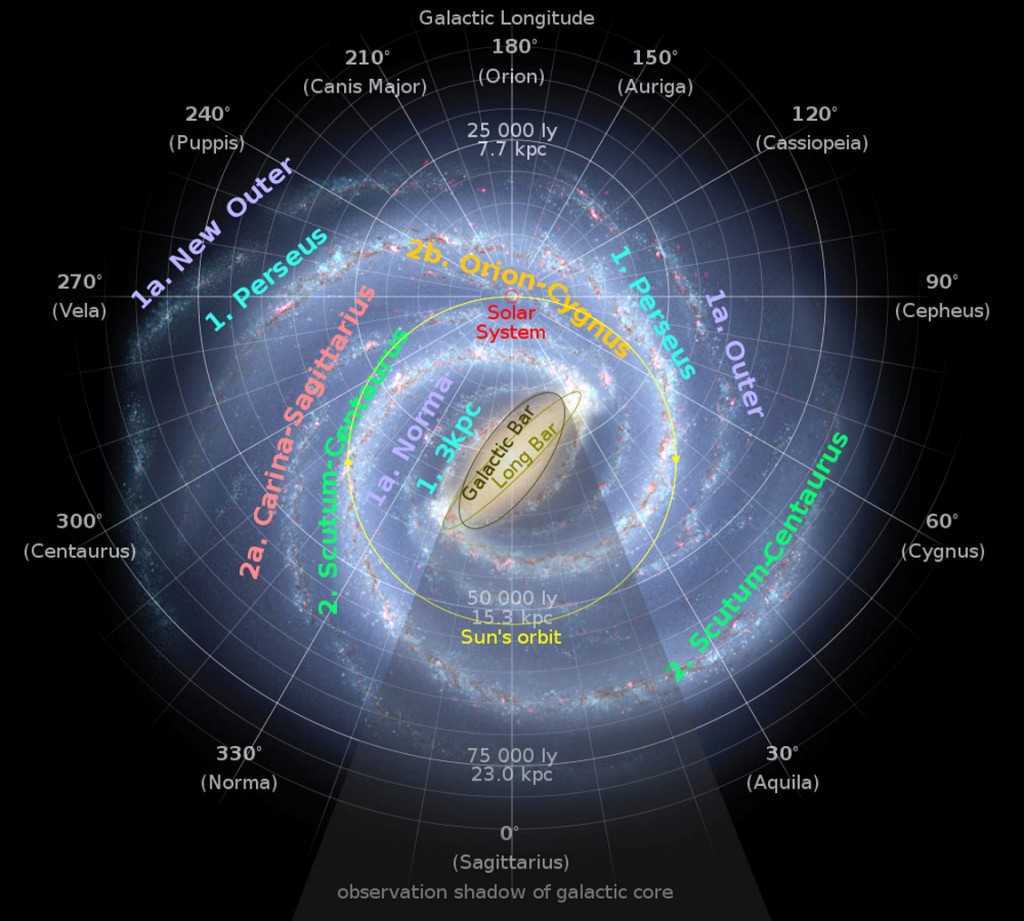 Галактические рукава и невидимая область Млечного Пути