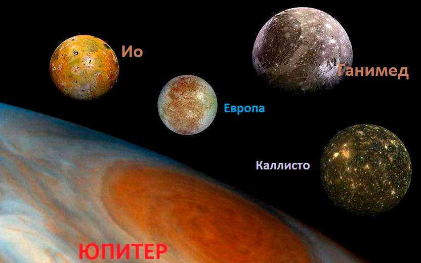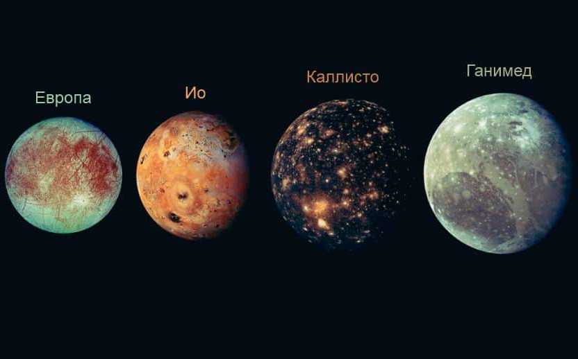 Ученые обнаружили у Юпитера 79 спутников. Самые крупные из них — Ио, Европа, Ганимед и Каллисто, открытые Галилеем.