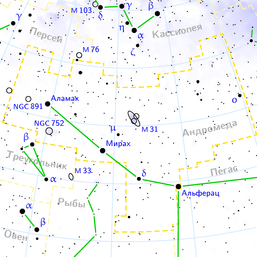 Карта созвездия Андромеда. Изображение: Denis Ibaev / Wikimedia Commons
