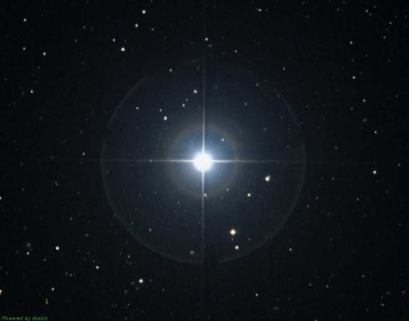 Эта звезда – одна из самых красивых двойных. Расстояние между компонентами составляет 19.6”, то есть их можно легко увидеть в бинокль.