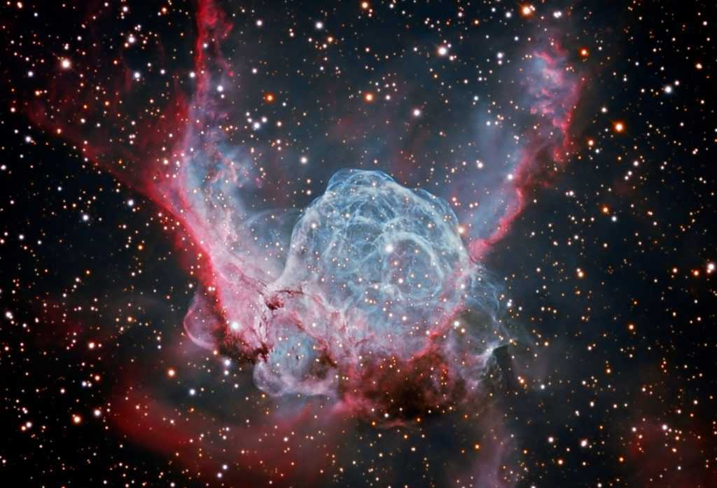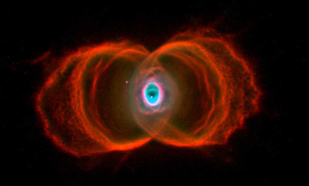 Планетарные туманности – это оболочки, сброшенные звездами на заключительном этапе их эволюции. Нормальная звезда светит за счет протекающих в ее ядре термоядерных реакций, превращающих водород в гелий. Но когда запасы водорода в ядре звезды истощаются, с ней происходят быстрые перемены: гелиевое ядро сжимается, оболочка расширяется, и звезда превращается в красный гигант.